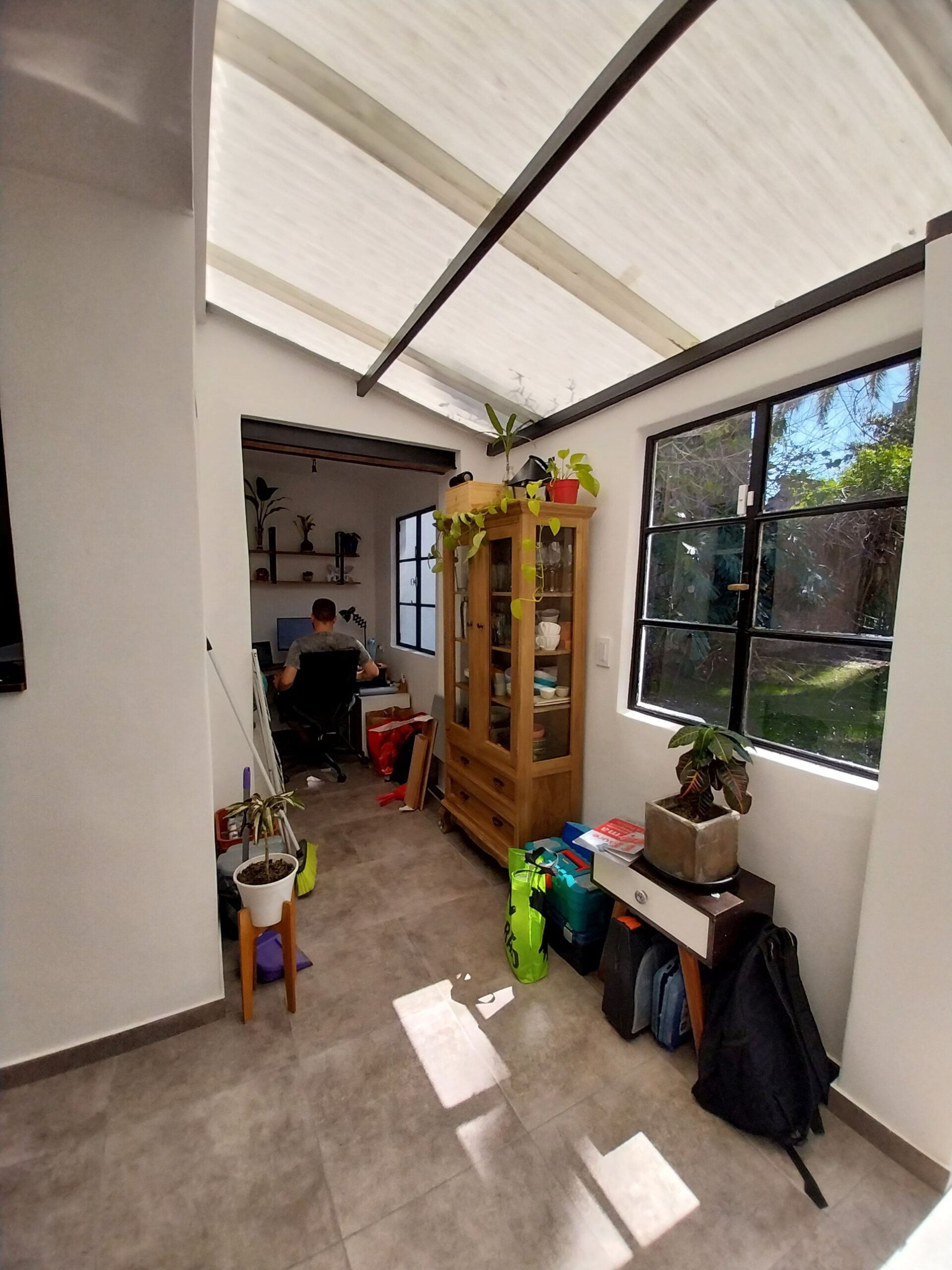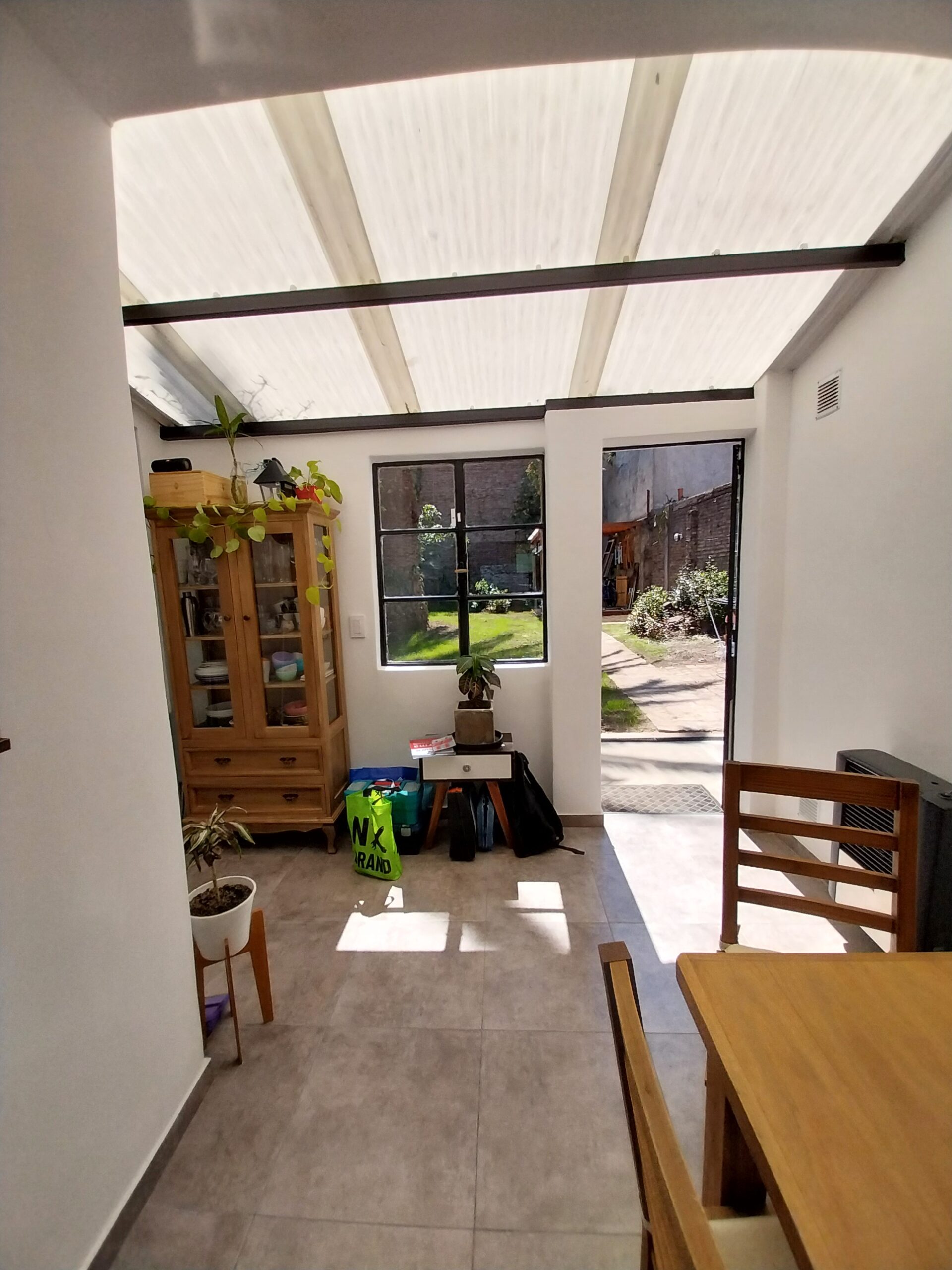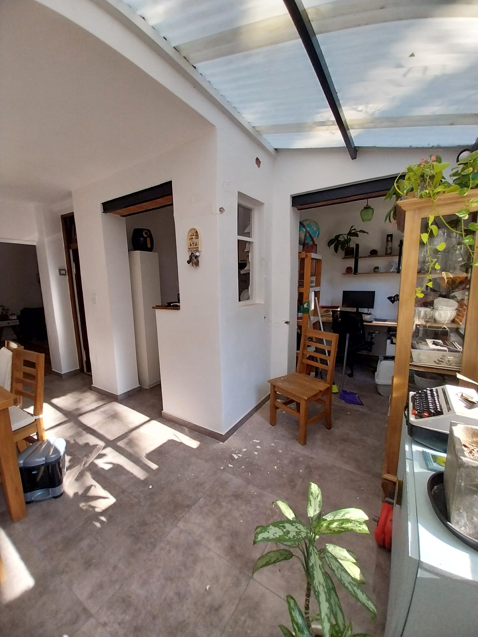 Sus propietarios necesitaban hacer una obra breve mejorando algunas situaciones puntuales que no funcionaban o presentaban patologías constructivas. En el proceso de asesoramiento preliminar sugerí sacrificar un poco de superficie de la cocina para reubicar el baño y liberar el espacio ocupado por éste. El ex – baño se transformó en un escritorio super luminoso que mira hacia el jardín